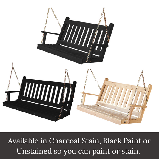 Black Winslow Porch Swing (Cedar or Pine) by PorchCraft