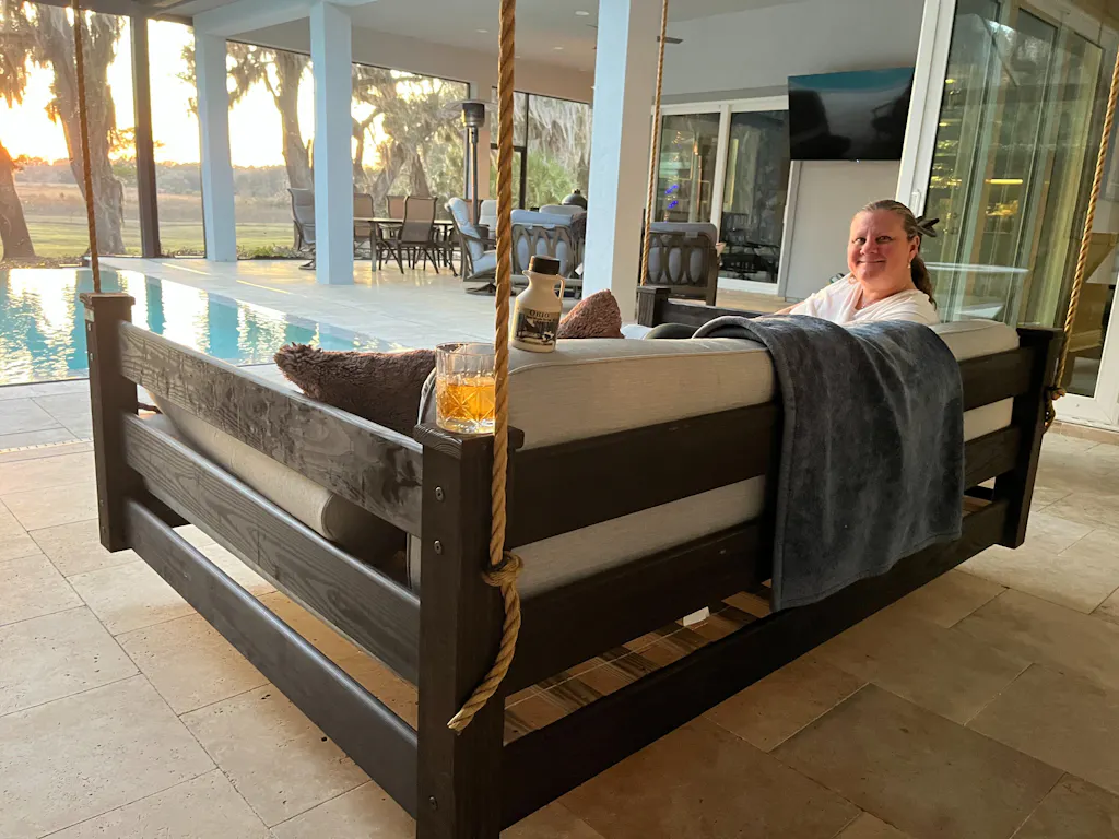 We are super pleased with our swinging day bed. Perfect place to enjoy a good book, a cup of coffee or a beautiful sunset. It's the signature piece on our back porch that completes our at home paradise.