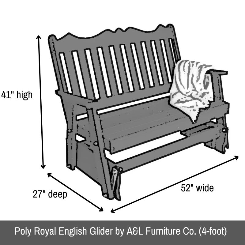 Transform your outdoor living space with the Poly Royal English Glider, an ideal blend of timeless grace and modern resilience. This glider boasts a smooth, soothing motion, making it the perfect choice for unwinding on your patio, garden, or porch. The Poly Royal English Glider features a classic English-inspired design, complete with a contoured seat and broad armrests, providing both comfort and sophistication. Its effortless elegance effortlessly enhances any outdoor setting, while its low-maintenance and easy setup ensure lasting beauty and functionality year after year. With a variety of color options available, the Poly Royal English Glider lets you personalize your outdoor area with ease. Experience ultimate style, comfort, and durability with the Poly Royal English Glider, a delightful addition to any outdoor space.