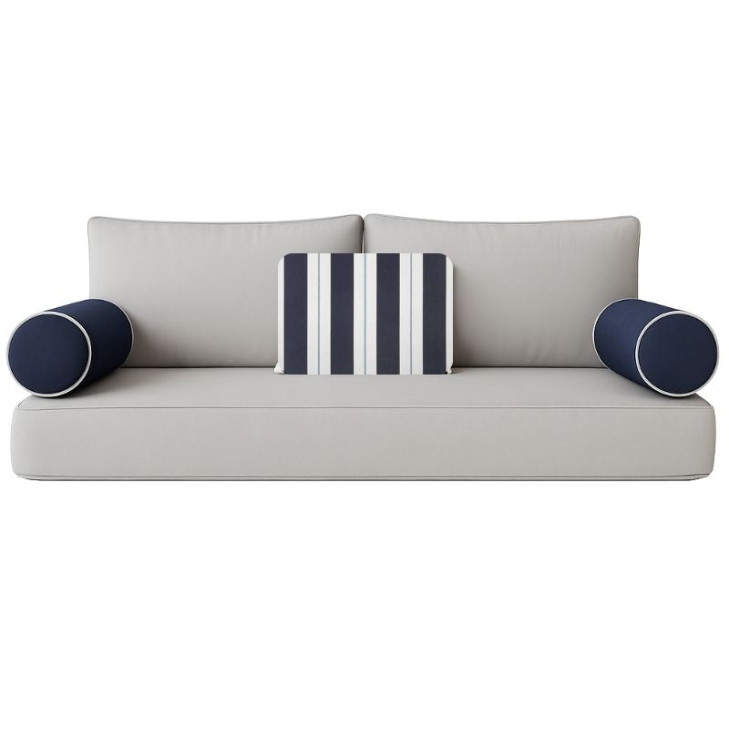 Looking for porch perfection that doesn’t scream for attention? The Comfort Plush Slate & Sea Swing Bed Cushion Package is all about quiet confidence — pairing classic navy, soft slate gray, and a crisp striped accent that ties it all together.